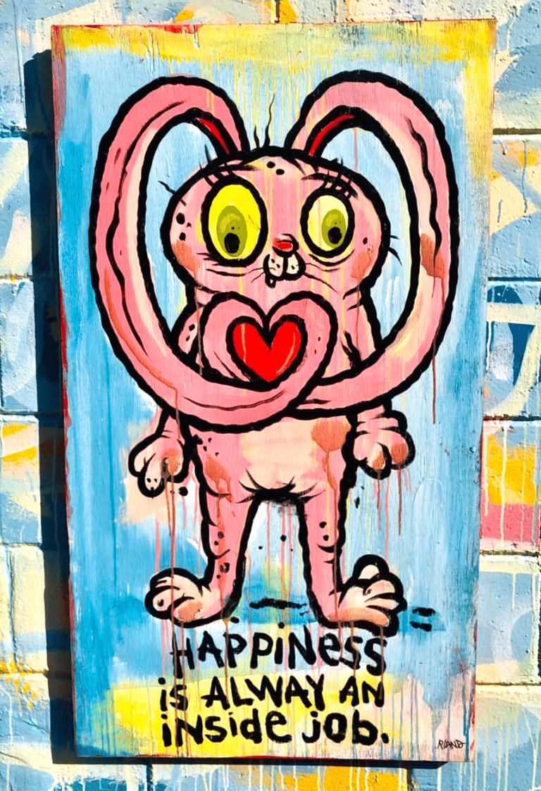 Happiness bunny Original painting on wood!